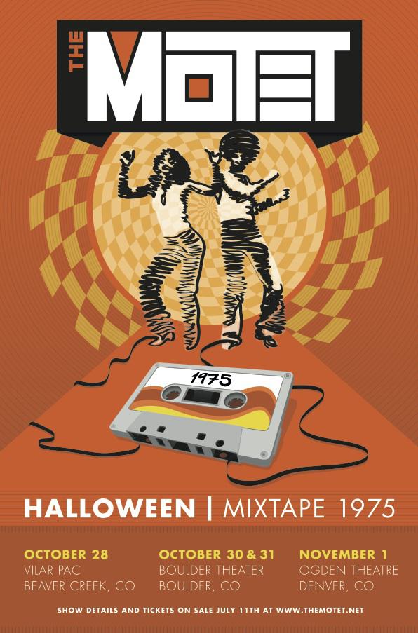 Progressive funk collective The Motet announces the addition of the Aggie Theatre to their annual Halloween run along Colorado’s Front Range. The band will bring their highly anticipated “Mixtape 1975” –themed party to Fort Collins on Oct. 29 – with shows at Beaver Creek’s Vilar PAC on Oct. 28, the Boulder Theater on Oct. 30 and 31, and Denver’s Ogden Theatre on Nov. 1 already announced. Tickets are currently on sale at http://www.themotet.net and are already going fast. Check out this recently released video from the band’s sold-out Red Rocks Amphitheatre show with Umphrey’s McGee this past July, and see below for the complete list of The Motet’s currently confirmed tour dates.
