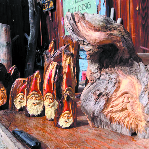 It’s important to know Daryl Boone makes custom furniture, mats and frames artwork, paints signs and like to undertake many other creative endeavors, otherwise you might think all he does is carve wooden Santas. The Empire-based artist and proprietor of Glenbrook Gift & Gallery used to only carve a few of the holiday figures for friends at Christmas gifts, now he makes them all year long to keep up with demand.
