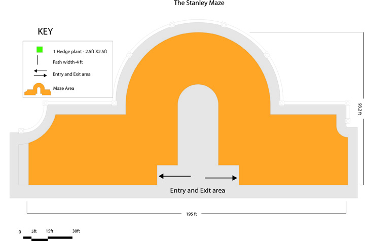 • The maze should be drawn inside the orange space in the center of the template. The maze will cover an area of 61500 square feet for the front lawn.( view the Maze example link below for reference)
