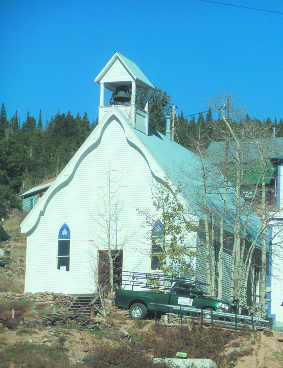 Dating from 1894, the rectangular one-story, wood frame church is built into a hillside with its side walls barely visible from the street. The steeply pitched front gabled roof is topped with a bell tower. The walls are clapboard, and there are decorative bargeboards held in place with rosette-shaped fasteners. Lancet windows flank the entry door, and a round window is in the gable end. Georgia O’Keeffe came to Ward in 1917 and painted landscapes and an oil painting of the building, Ward, Church Bell.