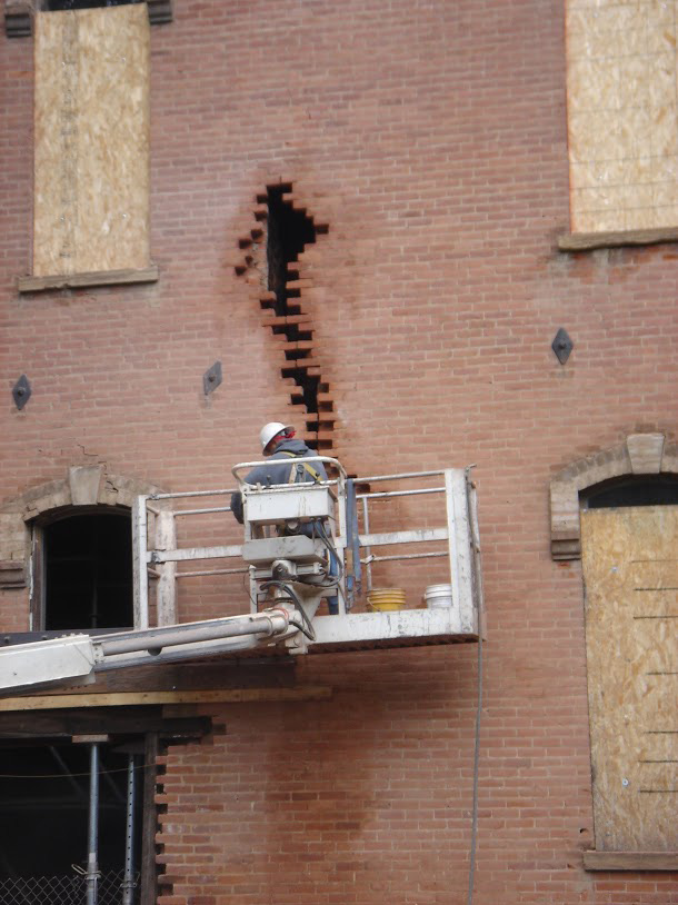 Restoration was conducted in three phases over the following years, beginning with the roof, eaves and gutters. A National Park Service “Saving America’s Treasures” grant was awarded to the restoration, and in 2008, structural reinforcement, asbestos abatement, compression grouting and restoration of exterior brick, stone, window and doors was completed. The final phase in 2009 included restoring the historic exterior paint colors, and reconstructing the towers. Long Hoeft Architects, Hoehn Architects, Building Restoration Specialties and Silver Plume Home Services completed the work.