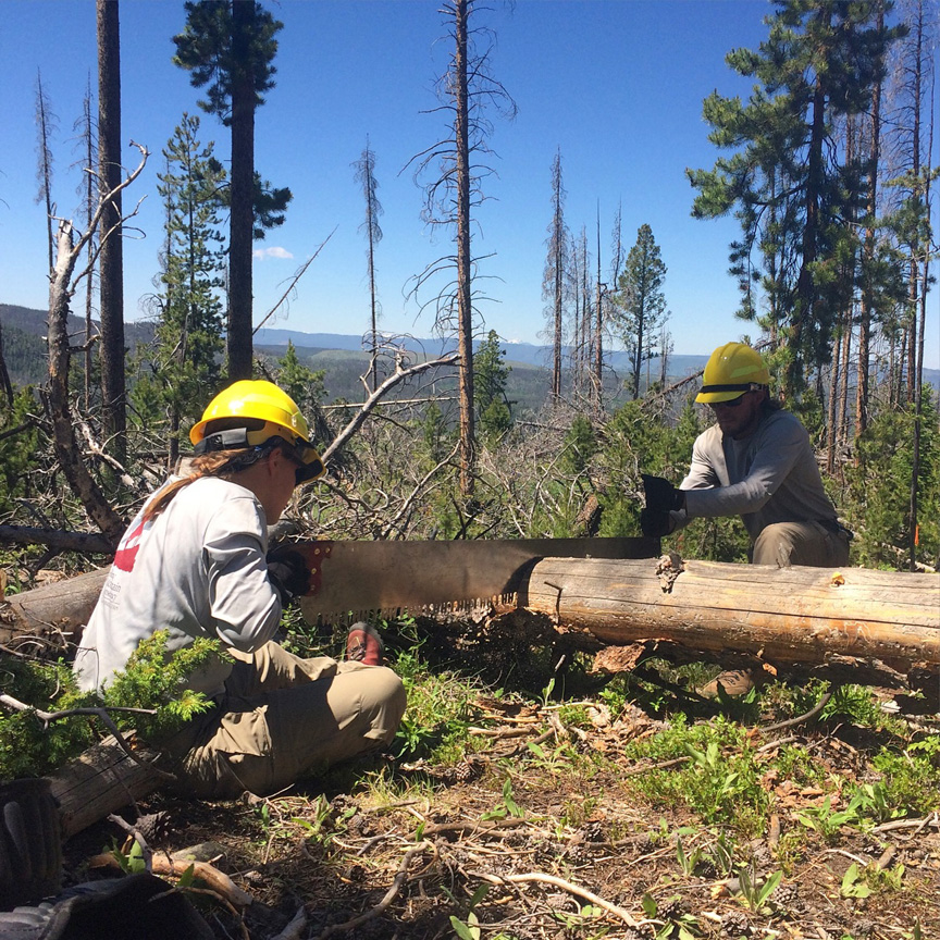 The final area served by the Conservation Corps is in Grand County. The Shadow Mountain Crew works with the wilderness trails crew of the Sulphur Ranger District. This year most of their work helped to restore access and maintain sustainable trails, and educate hikers along the Continental Divide National Scenic Trail by removing over 700 downed trees from Knight Ridge, rehabbing a significantly eroded and braided section of the trail near the Devils Thumb and completing backcountry patrols.